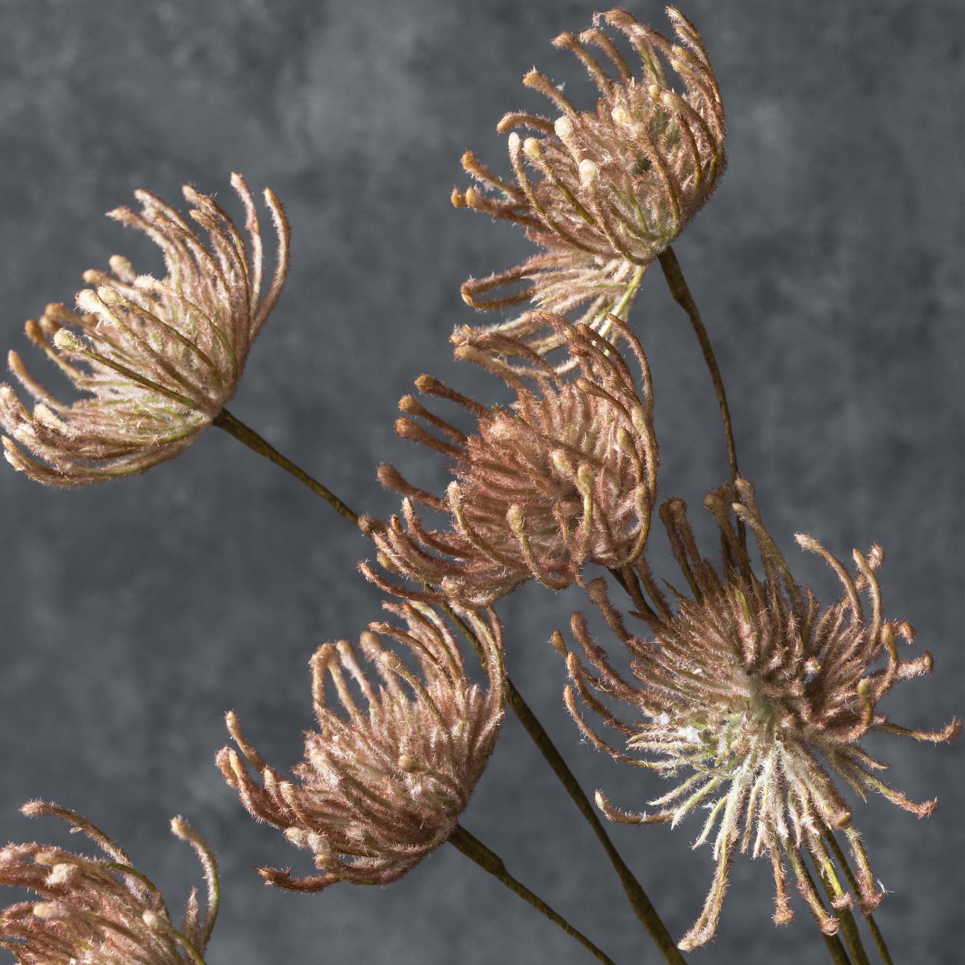 Topped with three textural heads in a beautiful, warm blush hue, it’s a fabulous stem to punctuate a bouquet of faux flowers in softer silhouettes like our faux hydrangeas or dahlias. Bringing in a touch of wildflower magic, style it in a grounding vase for a more rustic sensibility.