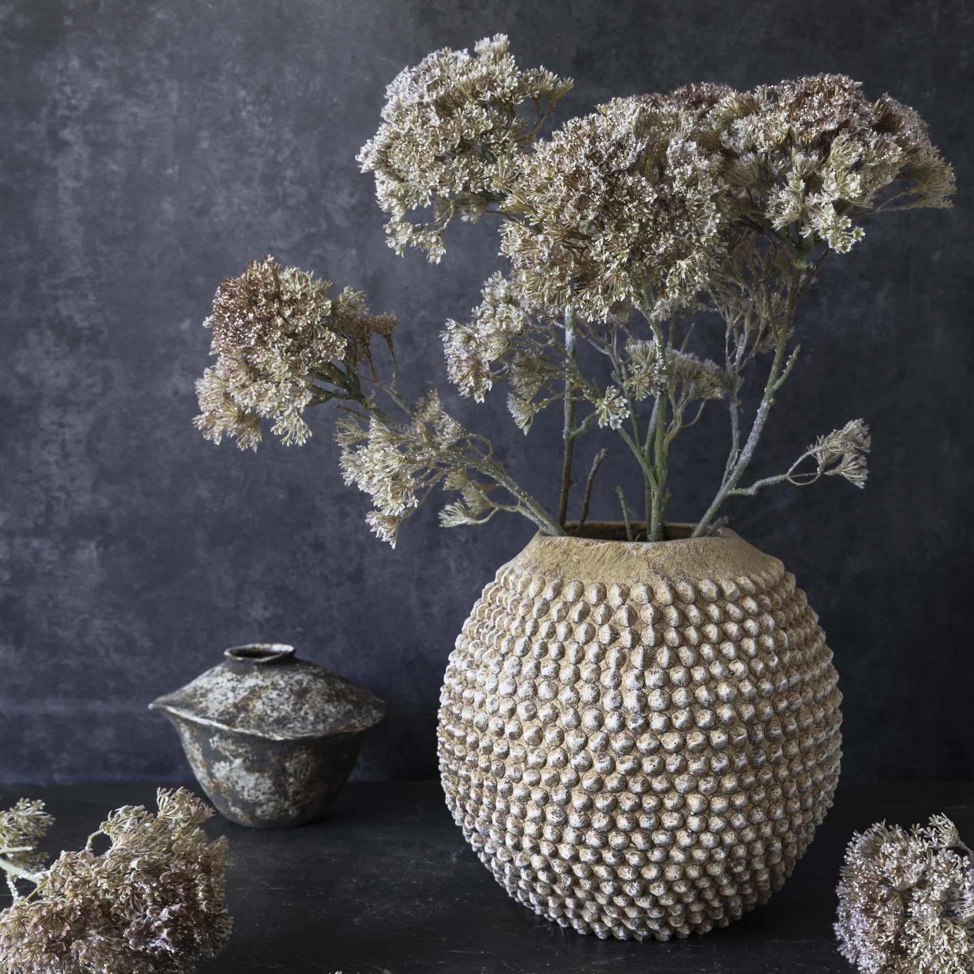 Our Artificial Orlaya is sold as a single stem. Shown in the large Aldan Vase with 5 stems.
