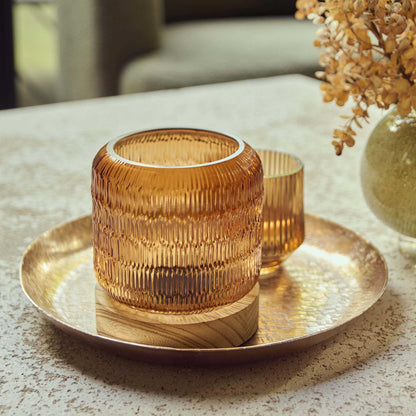 With its ridged glass design and wooden base, our Marielle Portable Table Lamp catches the eye while also creating the most inviting glow that you can take anywhere.