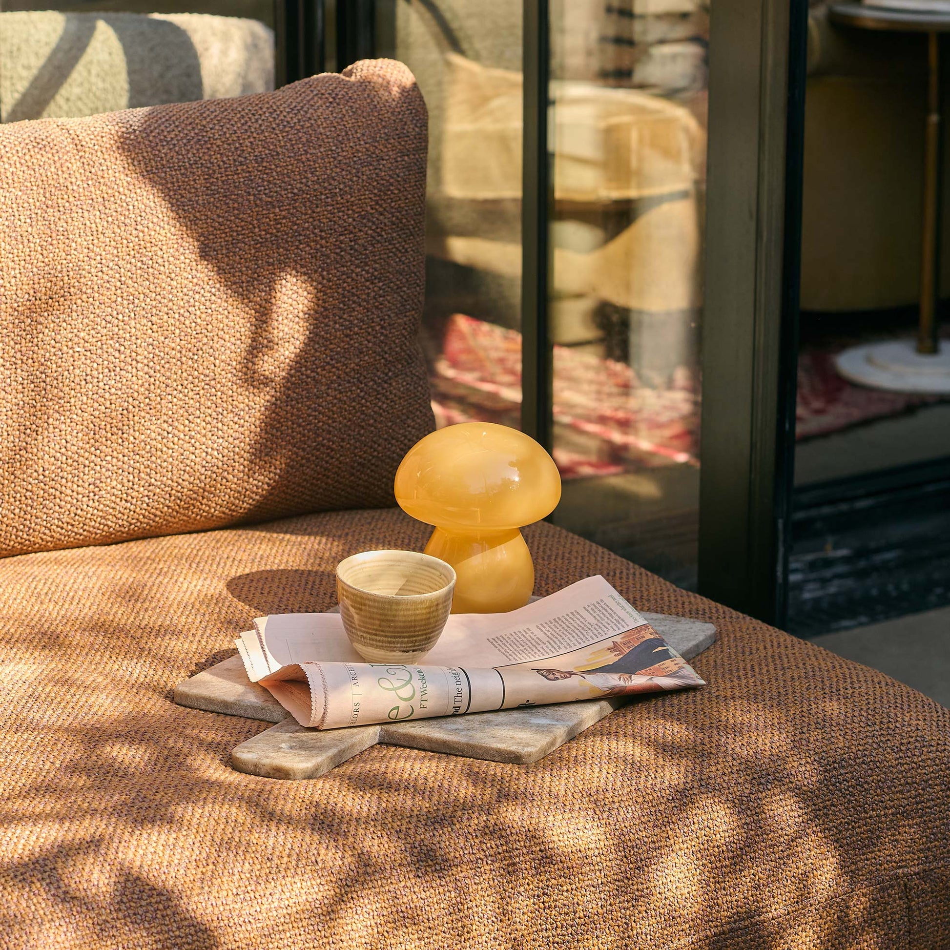 Combining a love of sculpture with some seriously cool lighting, this mushroom cordless table lamp might just be our favourite LED yet. Along with its charming silhouette and creamy mango marbled glass, this battery operated lamp gives you the flexibility and freedom to have fun with your lighting scheme. From those hard to reach places and dark corners to your coffee tables and bedside tables, this portable table lamp will light your home in the most beautiful of ways.
