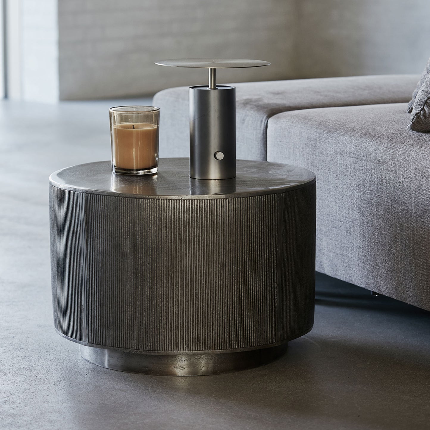 Effortlessly edgy and with the perfect hint of industrial design, this cool metal coffee table will bring in a stylish feel to any room. The smaller size makes it perfect for so many spaces, and it could easily work as a side table or a unique bedside table if you wanted it to. With its vertical grooves and deliberate imperfections, you get a table which might look unassuming but reveals lots of character and charm. Frame it with a rug to soften the edges, and style it up with pieces that create an eye-catching contrast like a vase of your favourite AA artificial flowers, and add a cosy glow with one of our portable table lamps.